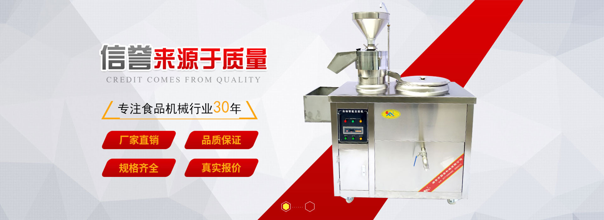 • 公司生產(chǎn)技術(shù)力量雄厚,檢測(cè)手段先進(jìn),主要生產(chǎn)食品機(jī)械,均由國(guó)家檢測(cè)中心技術(shù)鑒定為合格產(chǎn)品。